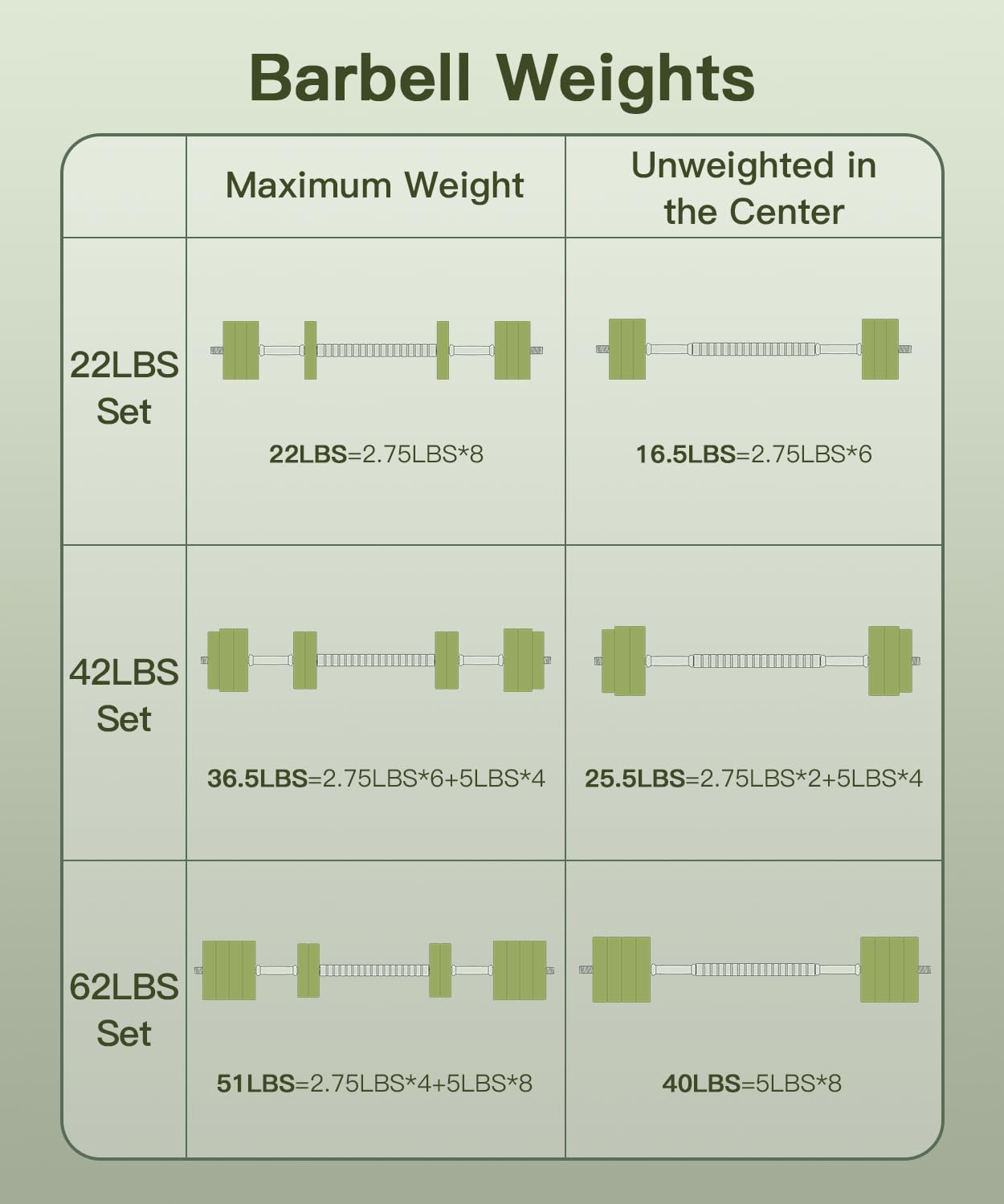 - Custom Weights for Everyone: With adjustable weights range (with accessories) for the single dumbbell is 6.3 lbs-11.8 lbs, the kettlebell is 4.2 lbs-12.5 lbs, and the barbell is 7.7 lbs-24.3 lbs. This dumbbell training set allows you to personalize your workouts. Whether you're a beginner or an experienced lifter, you can easily modify the weight to match your training needs and goals!