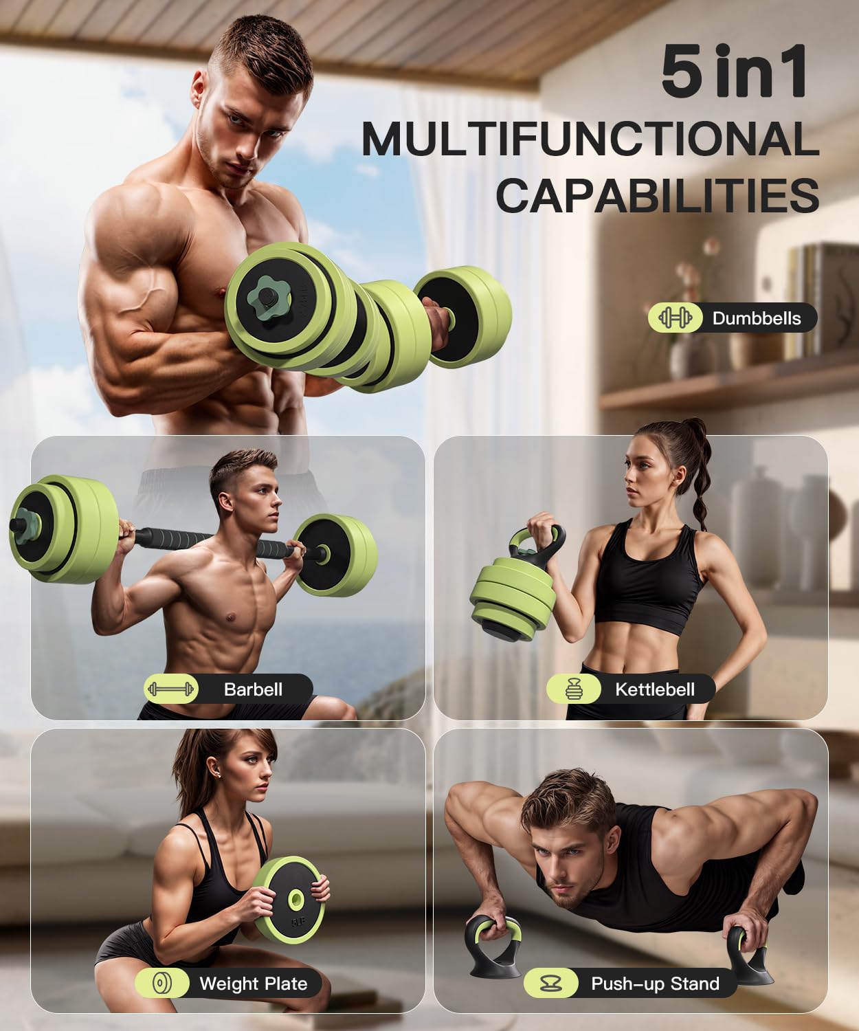 Adjustable Dumbbell Set 22/42/62LBS, 4-in-1 Free Weight Dumbbell Set Used as Kettlebell, Barbell, Dumbbell & Push-Up Stand, Iron Sand Weights Dumbbells with Connector for Home Gym