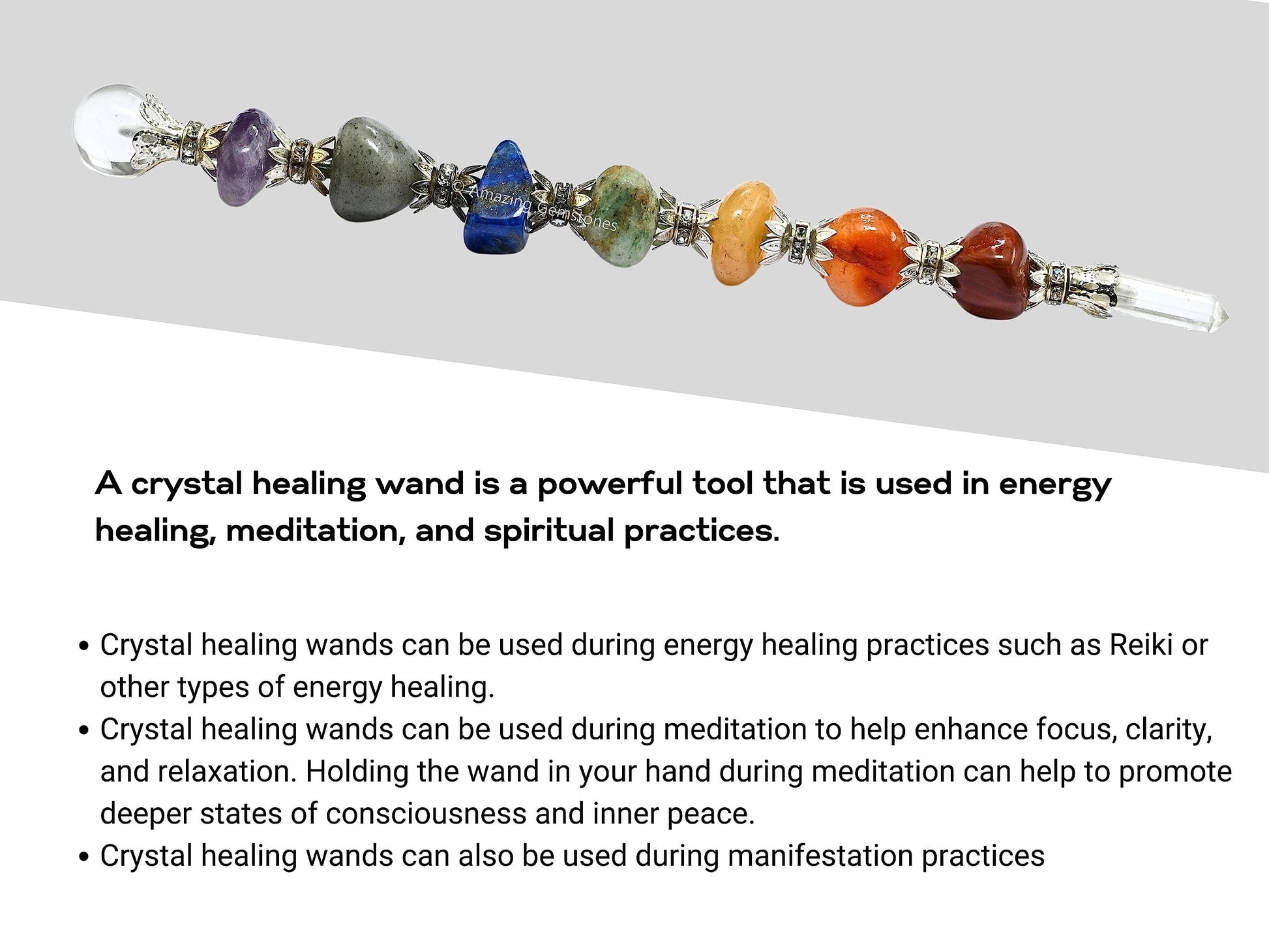 - Crystal Chakra Wand: Handcrafted wand made of genuine crystal, specifically designed for chakra healing and balancing. Can be used in various healing practices.