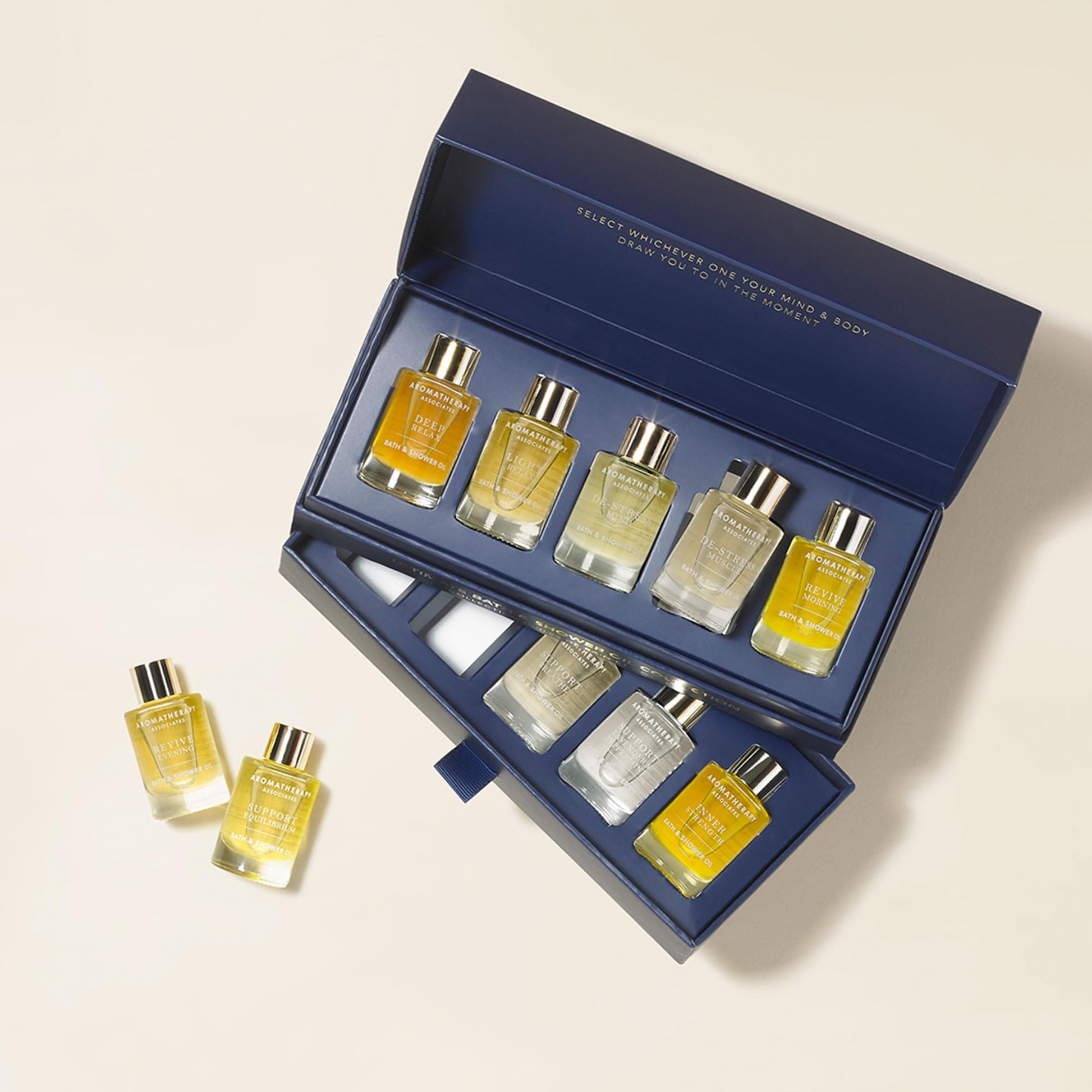 Aromatherapy Associates Essential Oil Blends – Luxury Body and Shower Oils for Dry Skin and Daily Aromatherapy, 10-Pack (0.30 fl oz Each) in Decorative Gift Box
