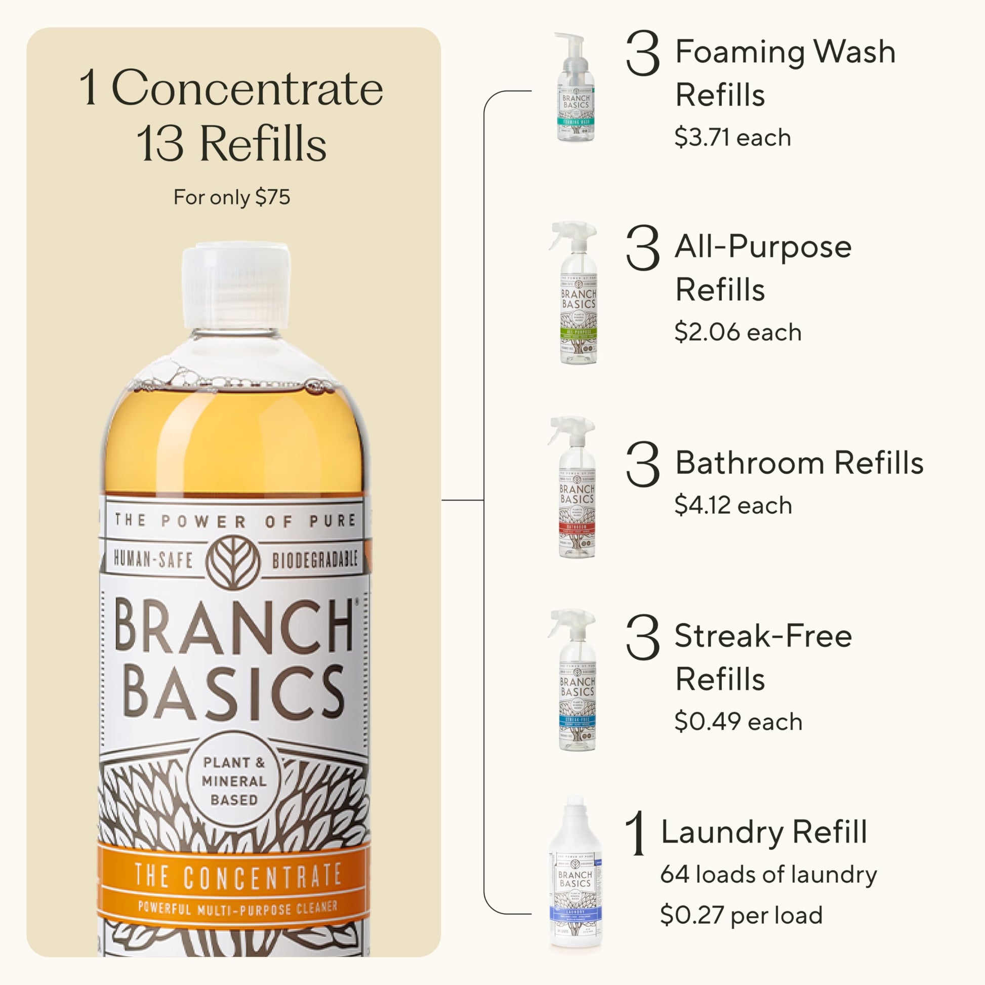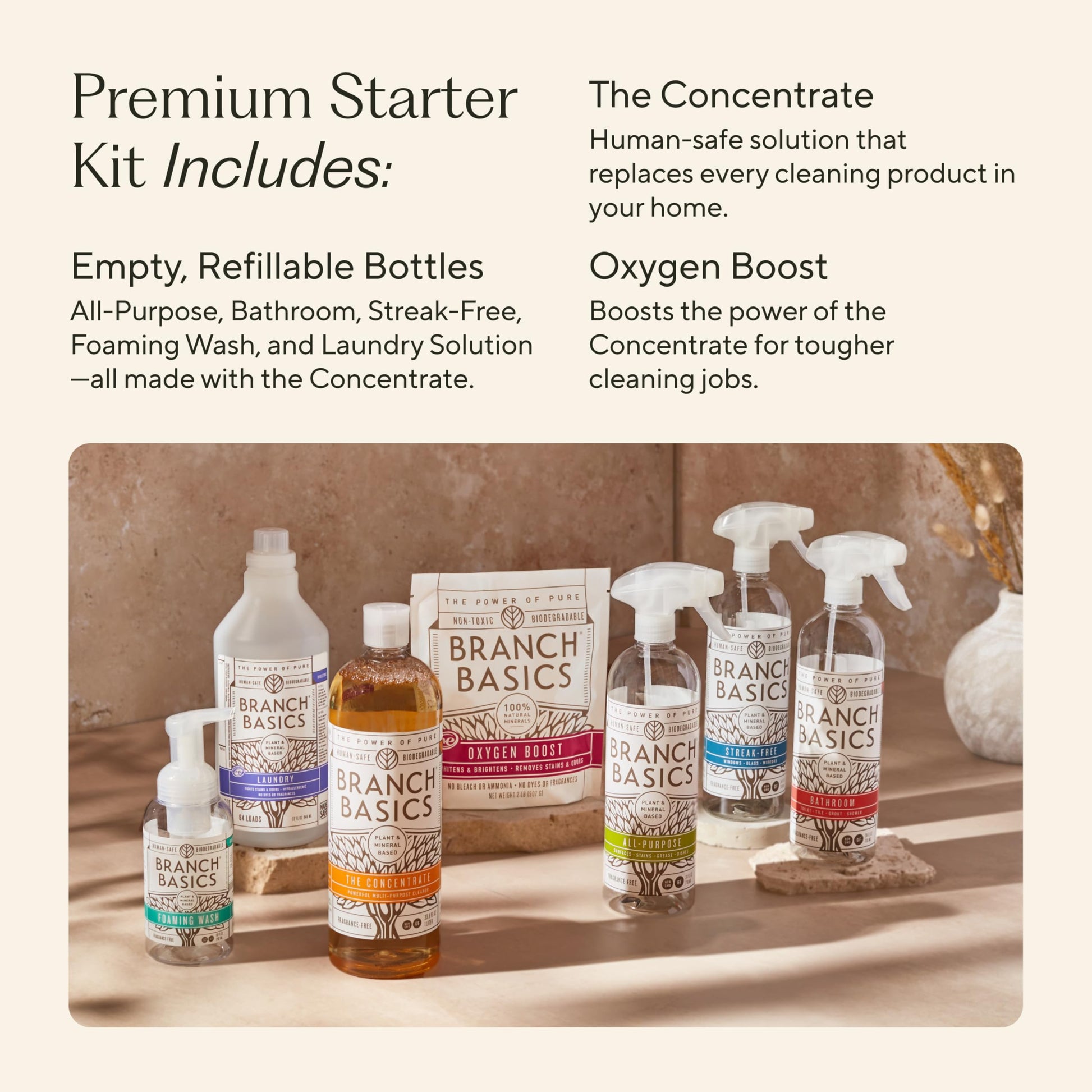 Branch Basics Premium Starter Kit: All Purpose, Glass, and Bathroom Cleaner plus our Foaming Wash, and Laundry Bottle (3 Plastic Spray Bottles + Concentrate) Fragrance-Free