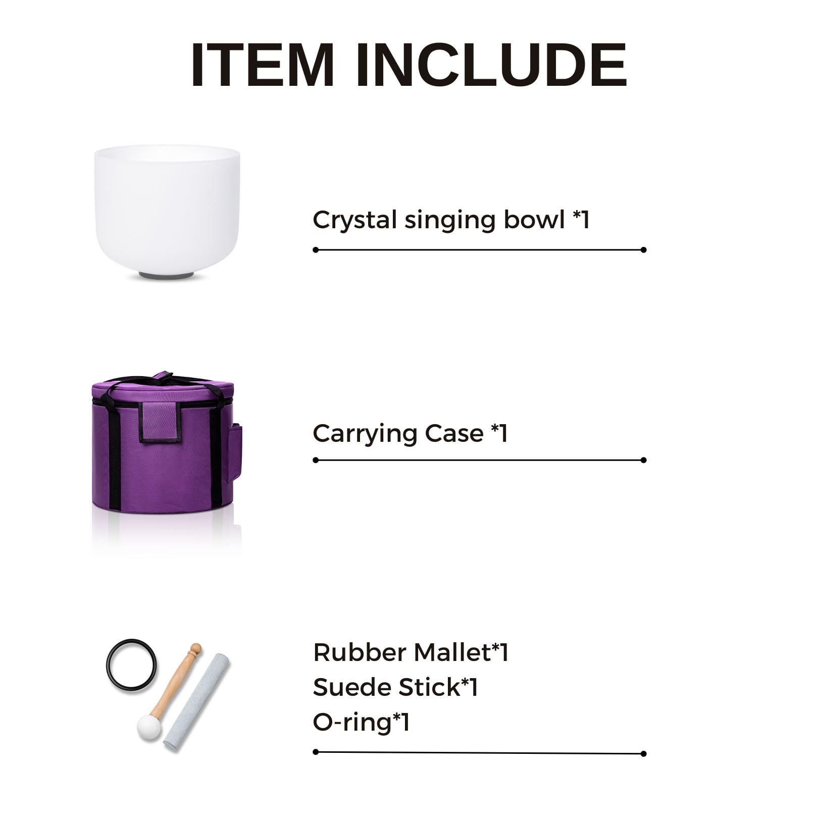 - Item Include: high quality 8inch A Note Third Eye Chakra crystal singing bowls 432hz, with carrying cases for portability, suede mallets and rubber mallets for playing the bowls, along with rubber O-rings for stability.