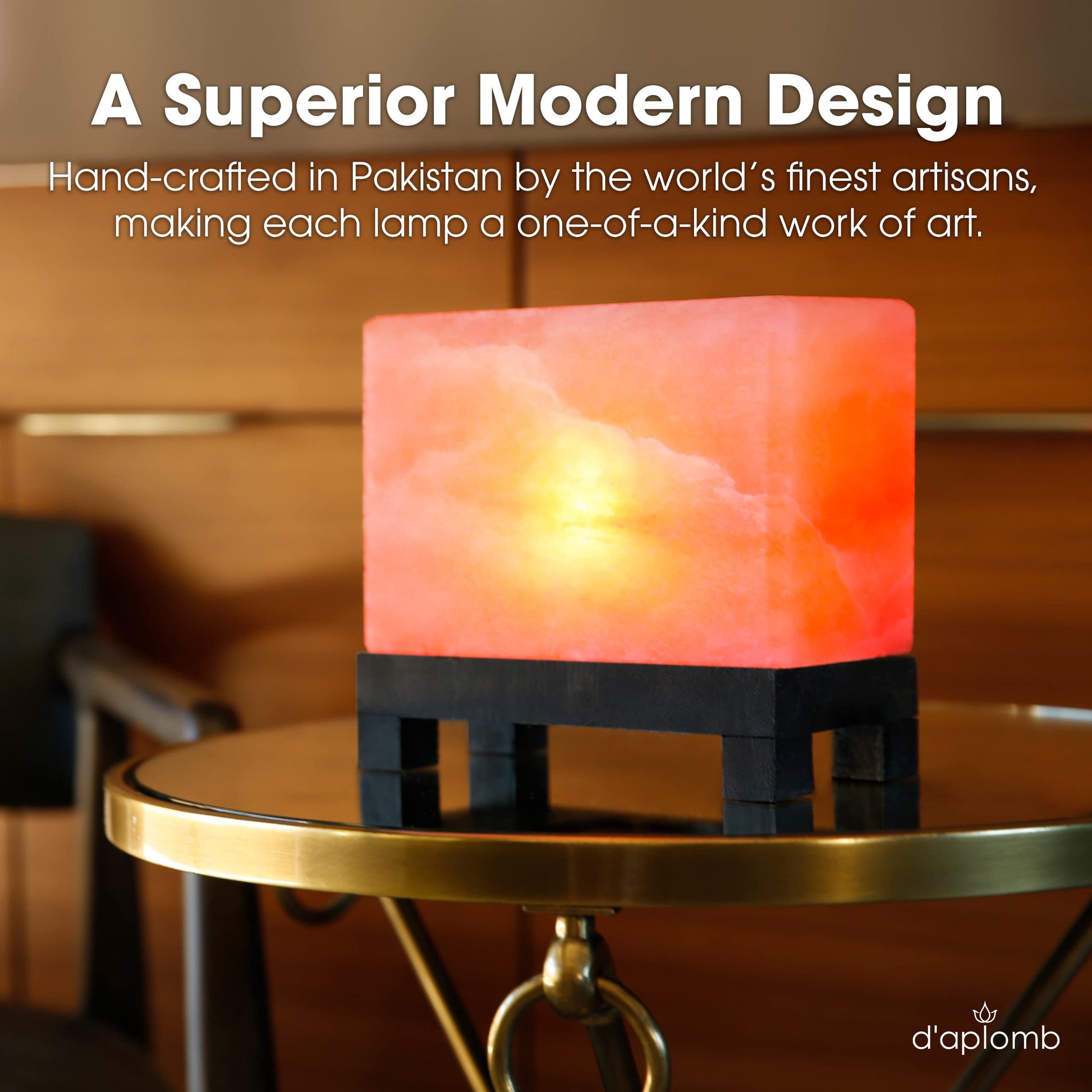 d'aplomb 100% Authentic Natural Himalayan Salt Lamp;Hand-Carved Modern Rectangle Rare Pink Crystal Rock Salt from The Himalayan Mountain; Footed Wood Base, Dimmer Cord; 11.5 lbs
