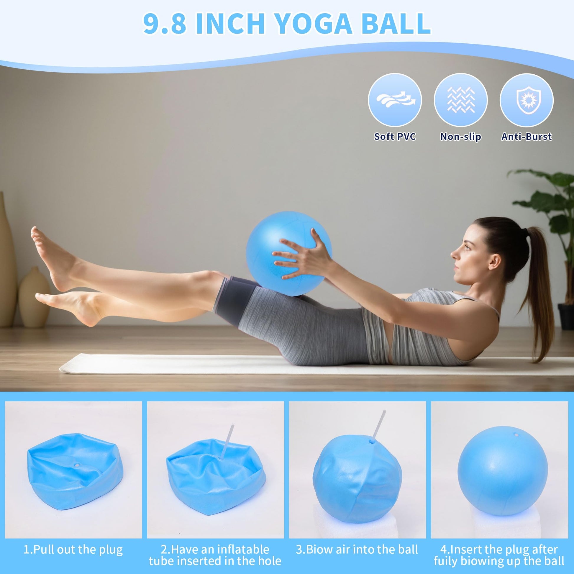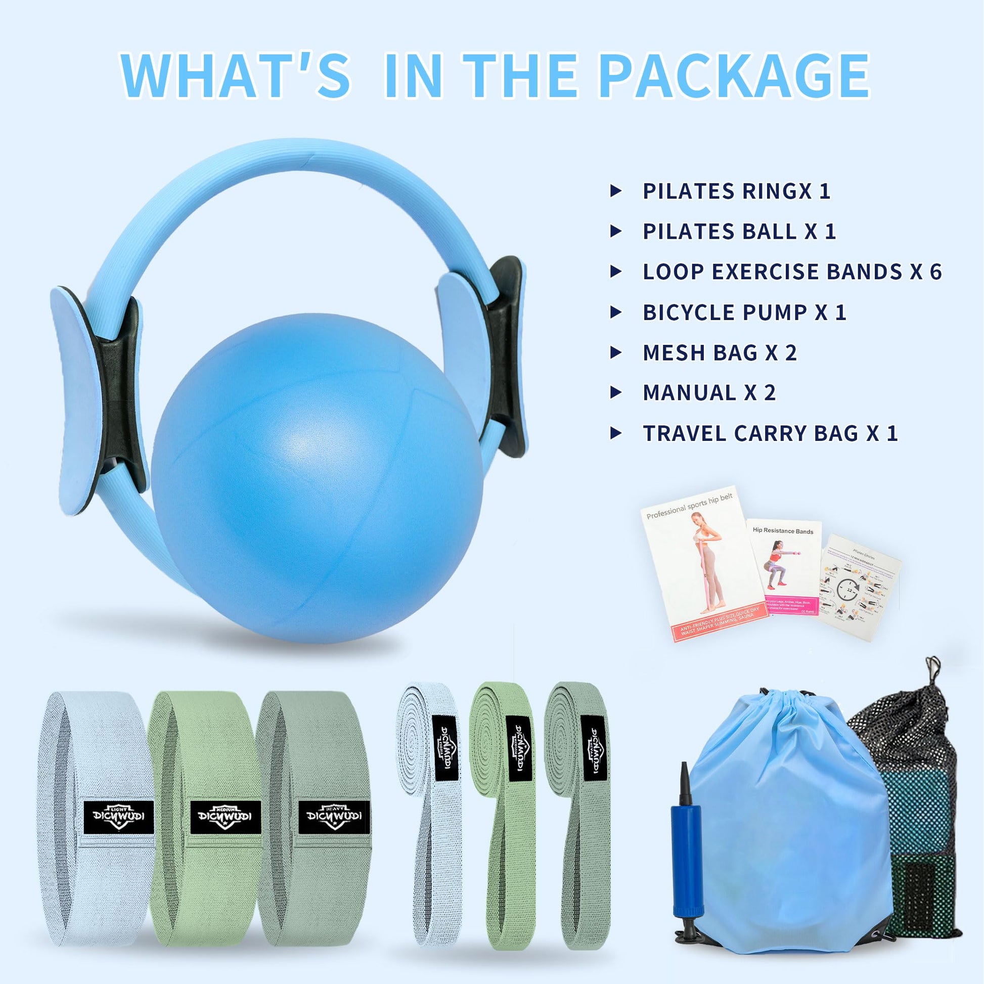 - 【Pilates Ring Set】 This Pilates equipment kit is perfect for home workouts. It includes a 12-inch Pilates ring, 9.8-inch Pilates ball, 6 levels of resistance bands . It is ideal for women, beginners and seniors and helps to build strength, flexibility and stability.