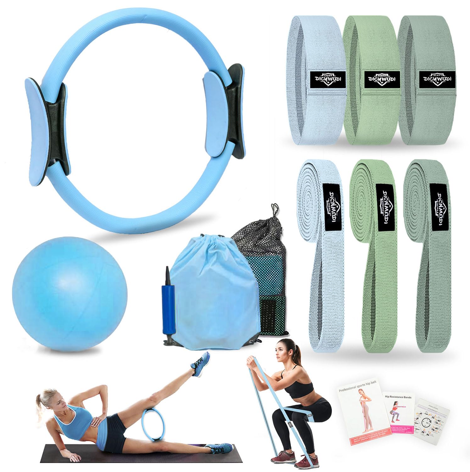 DICYWUDI Pilates Essentials Kit for Home Women, Pilates Equipment for Workouts, 6 Fabric Resistance Bands, 12 Inch Magic Circle Yoga Ring, Mini Exercise Ball, Great Exercise Equipment