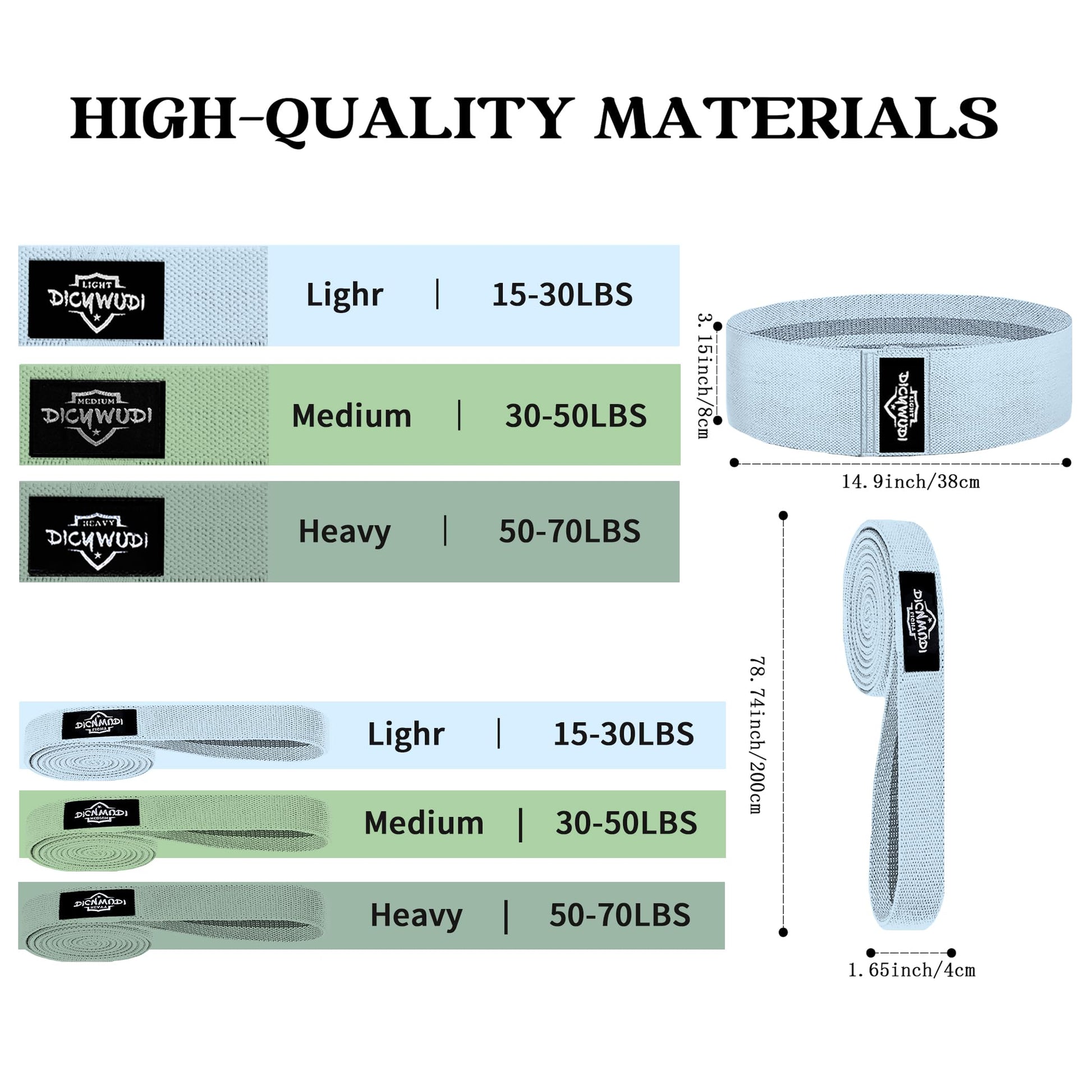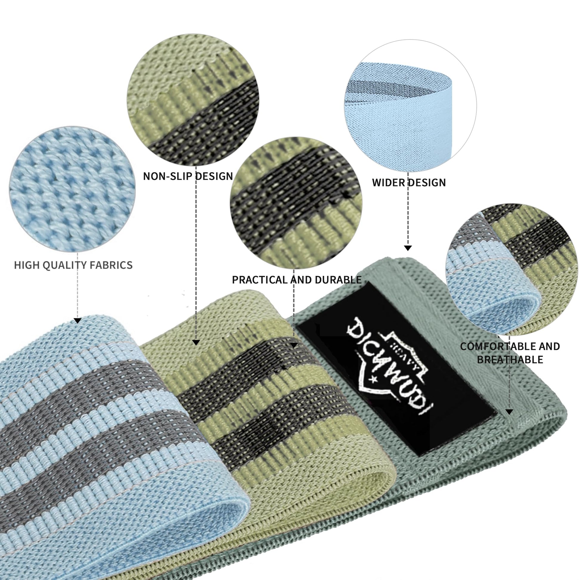 - 【3 RESISTANCE LEVELS】There are 3 different color resistance bands, the same size and different strengths. The cloth resistance bands provides greater flexibility and more sports selectivity for your exercise.