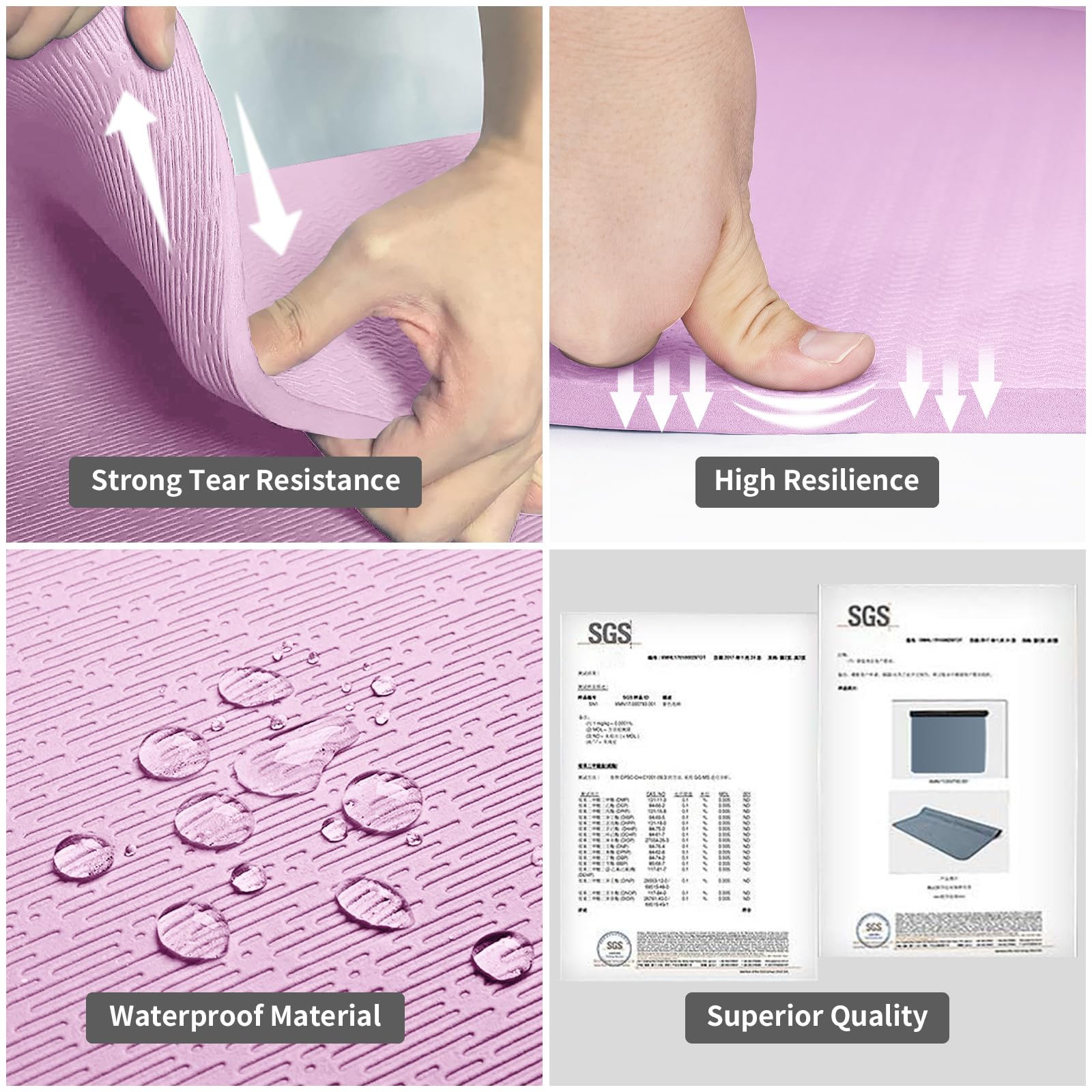 - Premium TPE Material: Our yoga mat is made from SGS certified TPE material which is healthy, odorless, eco-friendly and recyclable. It has a long lifespan which features high resilience, good tear and abrasion resistance, unlike those traditional PVC and NBR materials.
