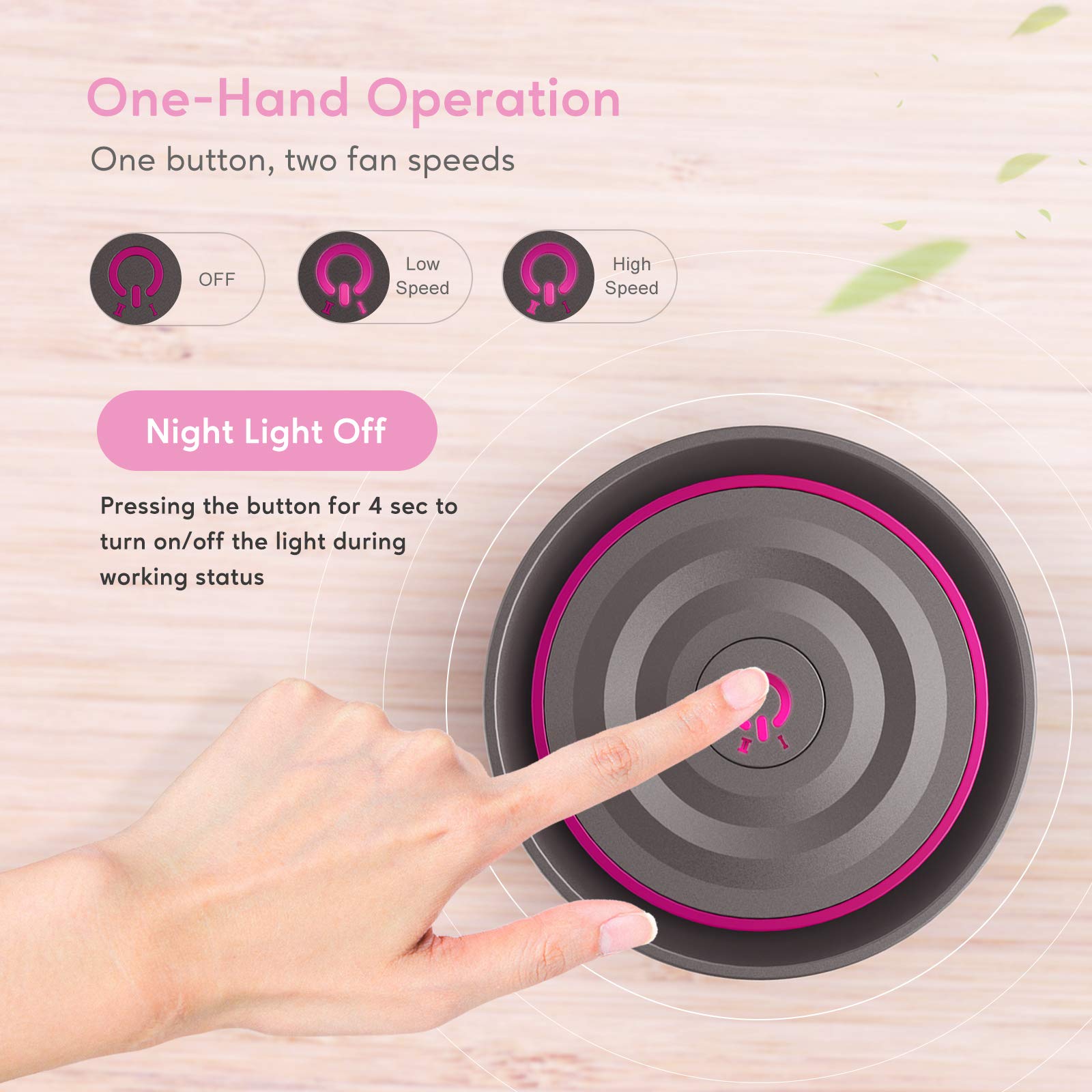 - Ultra-Silent Operation & Night Light- Runs at low noise level (<32dB) on high speed(White Noise) for your undisturbed sleep or reading, and the decorative night light can be turned off by long-press the power button for 4 sec for sweet dreams.