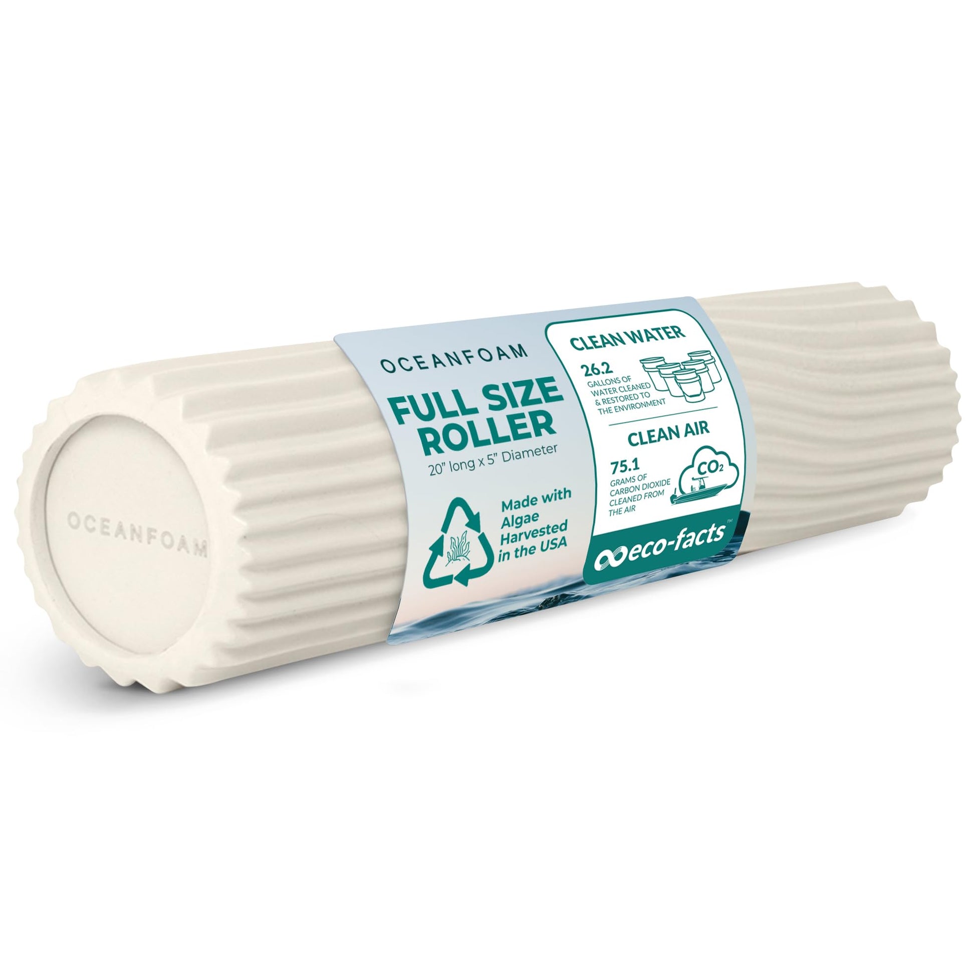 Oceanfoam Tidal Roller - Natural - Muscle Massage Foam Roller for Back Pain & Stretching - Firm and Ergonomic Wide Wave Textured - Yoga, Athletics, & Wellness - Full Size, 20" x 5"
