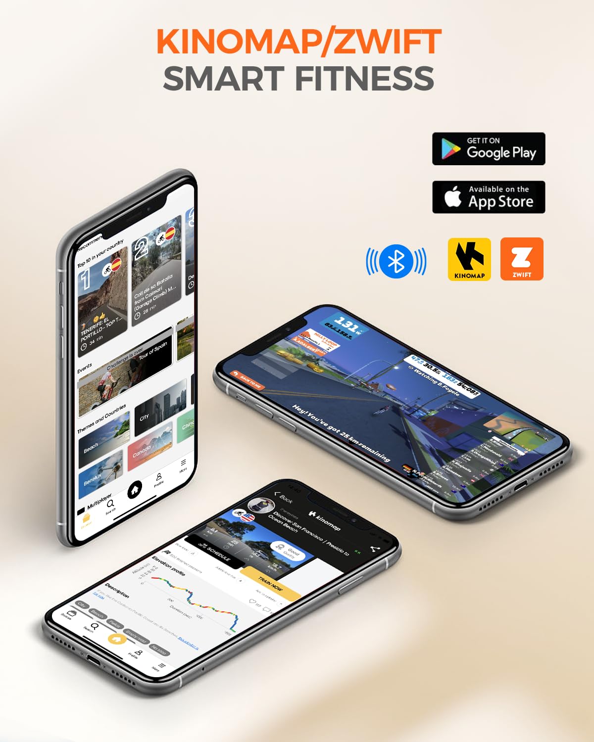 - Connection to Fitness APP: Built-In Sensor, compatible with KINOMAP, Zt APP. With KINOMAP/Zt Smart Fitness APP, you can record and view training data and share fitness data on social media. Make your exercise more fun