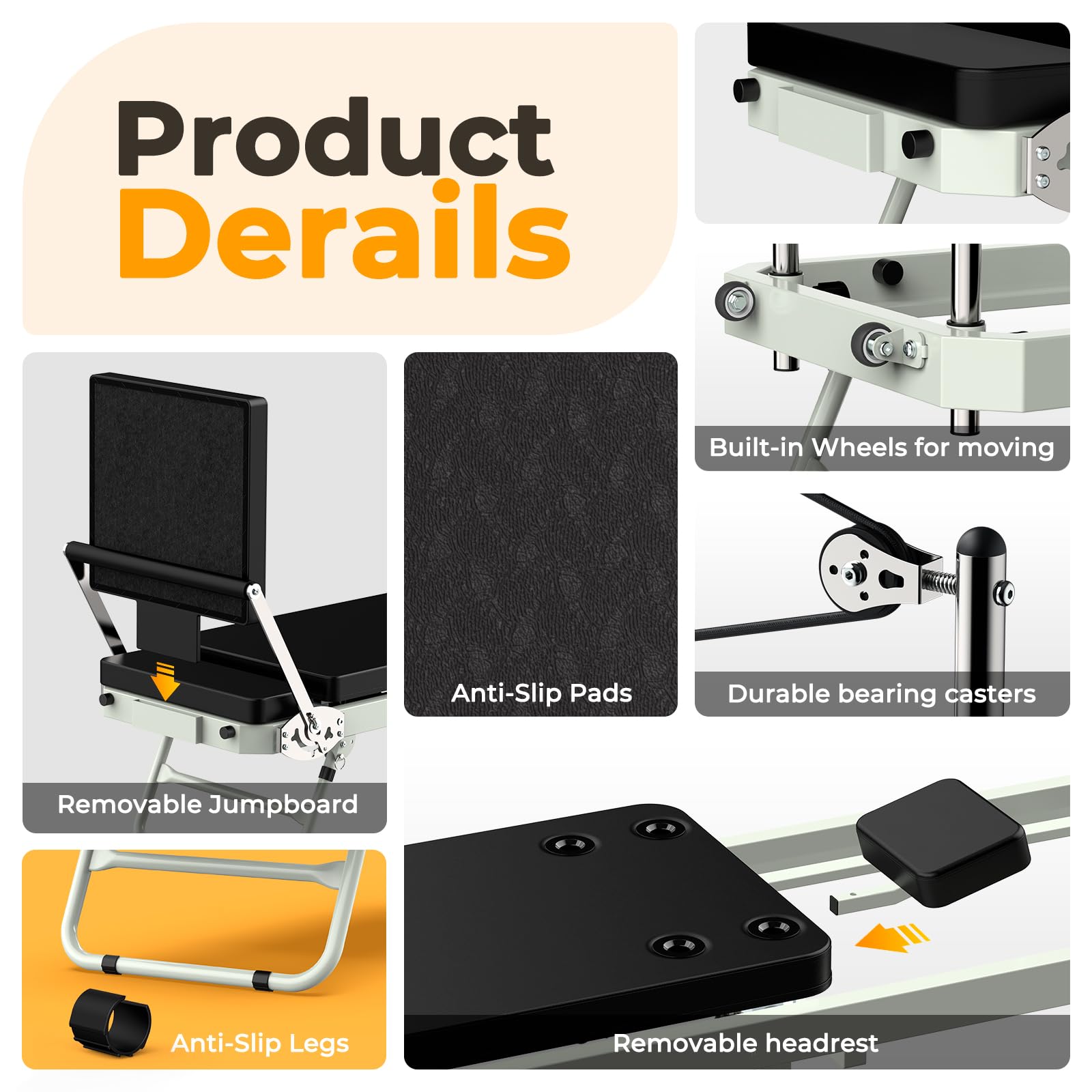 - 🌟【FOLDABLE PILATES REFORMER】Need to move your reformer pilates machine to a different room? No problem! The pilates reformer machine is foldable and comes equipped with wheels, making it easy to store and transport. It's the perfect addition to any home gym, no matter how big or small.