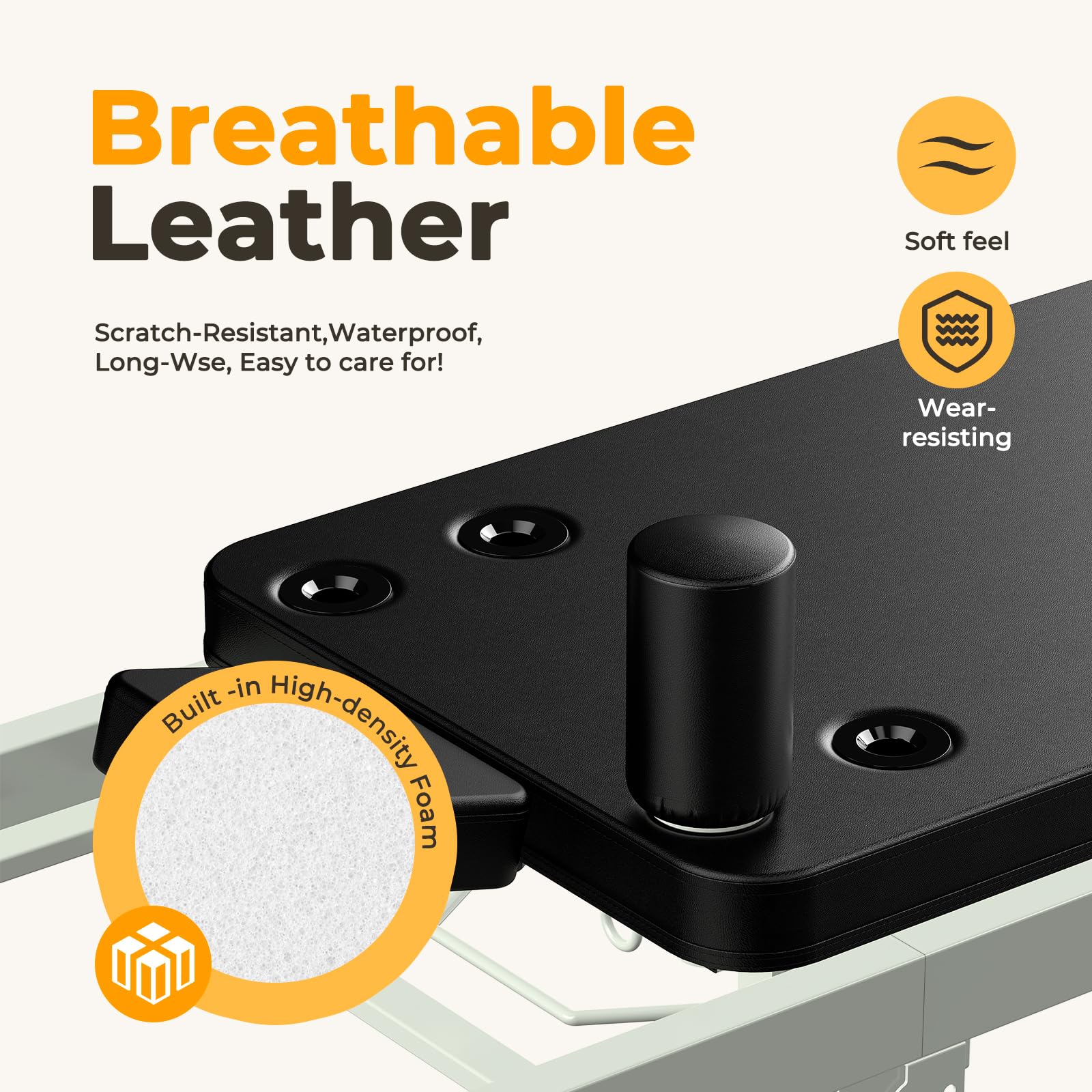 - 🥇 【SMOOTH GLIDES & COMFORTABLE PADS】Made with a smooth and sturdy aluminum alloy slide rail and thick leather padding, the foldable pilates reformer is designed with both durability and comfort in mind. Whether you're stretching or sweating, this pilates machine will stay stable and supportive through even the toughest workouts.