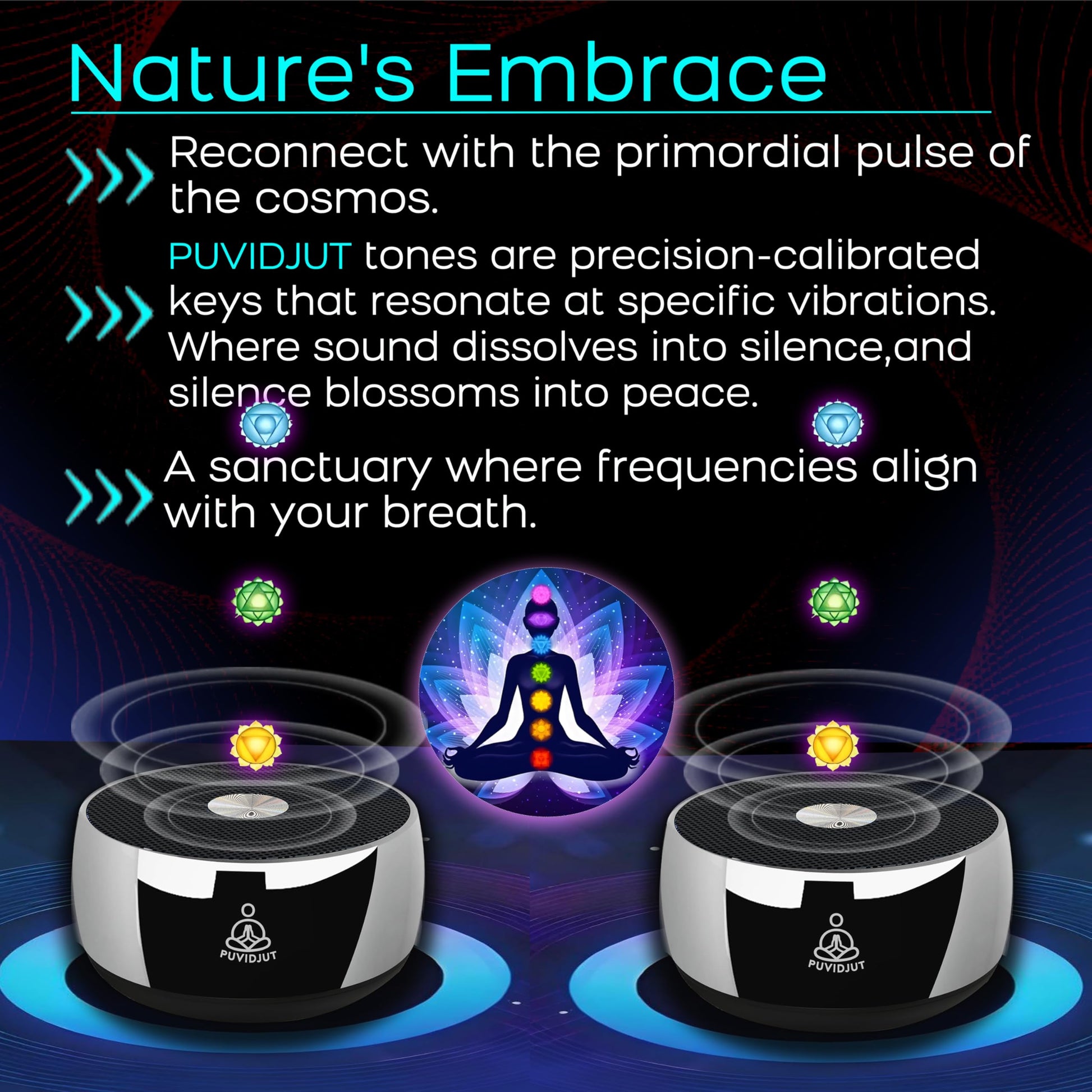 - Sound Frequency Generator System: PUVIDJUT has its own relaxing and smooth sound system, no need for a mobile phone. With PUVIDJUT sound frequency machine, you can enjoy the sound bath, you’ll reduce anxiety, remember peace, and recover hope from the tone wave. With our tone, start your inner spiritual journey.