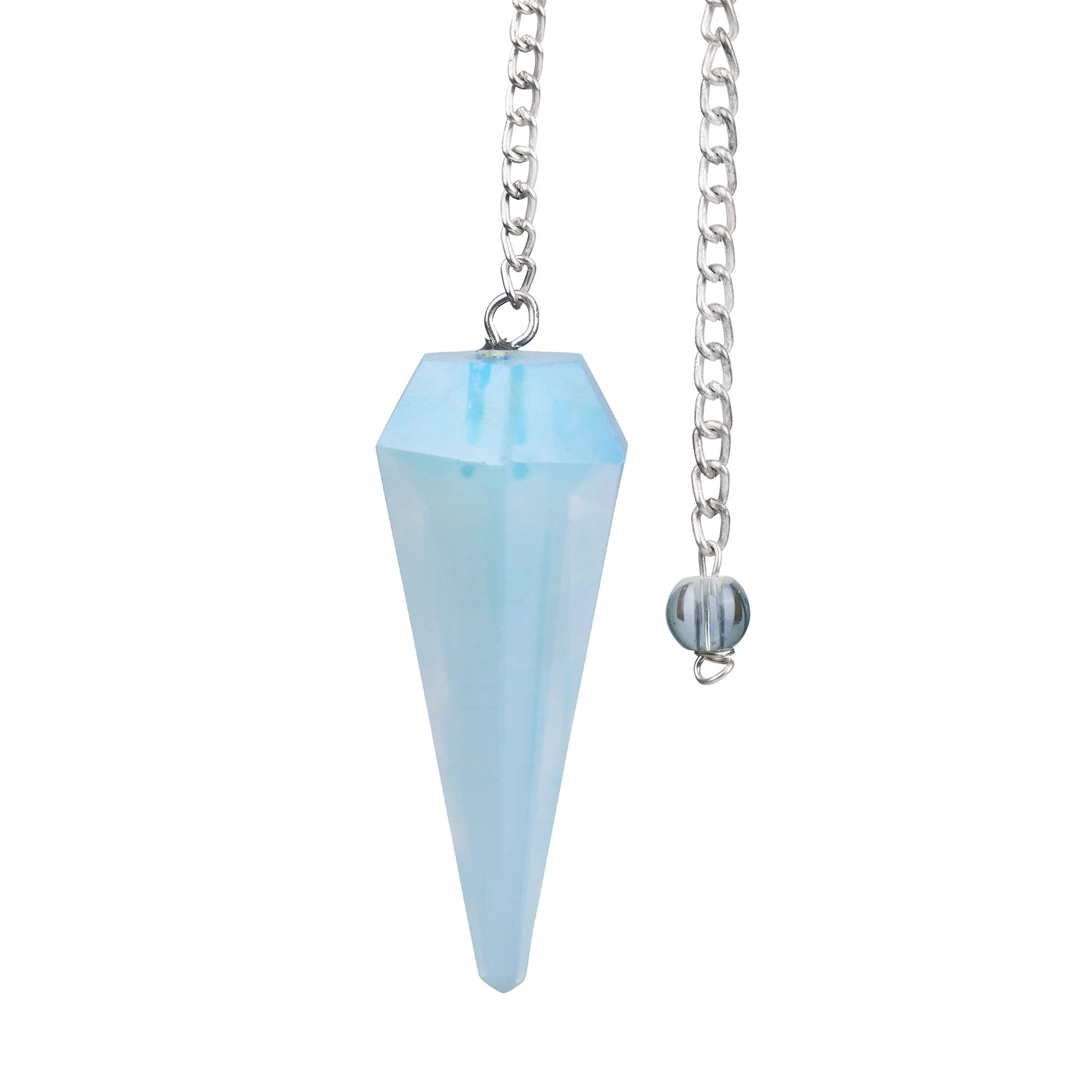 - OPALITE CRYSTAL PENDULUM USES: These natural crystal hexagonal crystal point pendulum can be used for a wide variety of purposes such as DIY pendant, crystal divination, reiki pendulum dowsing, pendulum scrying, chakra balancing and so on. You can also use your creativity and carry it along with you for healing purposes such as attaching it to your keys and use it as a key chain or hang it iside your car mirror.