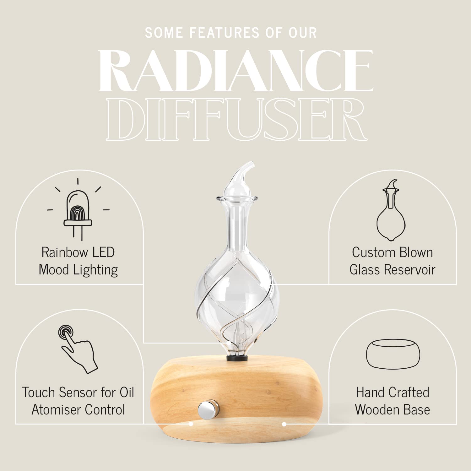 Radiance Nebulizing Diffuser for Pure Essential Oil/Aromatherapy, Premium Home & Professional Use, No Heat, No Water, No Plastic – Light Radiance by Organic Aromas