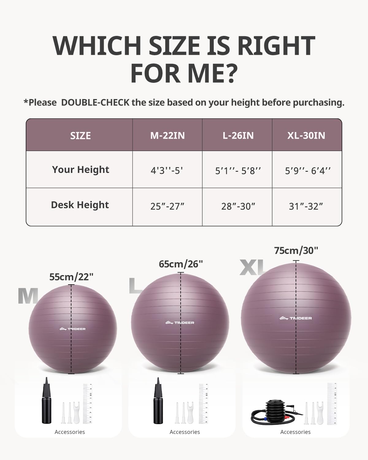 Trideer Yoga Ball for Pregnancy Office Ball Chair– Exercise Ball for Birthing, Labor, Stretching & Core Workout – Anti-Burst, Slip-Resistant for Home Gym, Flexible Seating & Physical Therapy