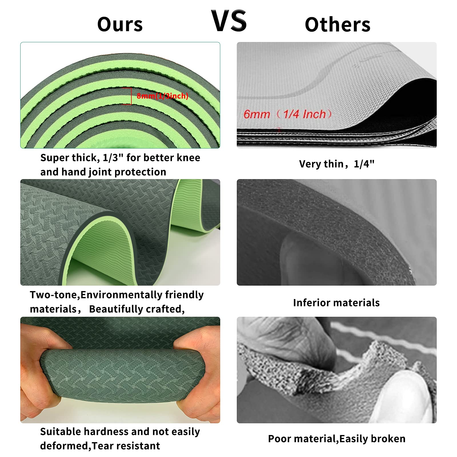 - 【8mm thickness, very suitable for yoga beginners】Size: 72inch x 24inch x 1/3inch, 8mm thickness is light and comfortable, excellent flexibility, 8mm thickness can provide the best level of cushioning and protection for the joints and knees, at the same time It still allows you to hold on to the floor to keep your balance. Protect the safety of yoga lovers.